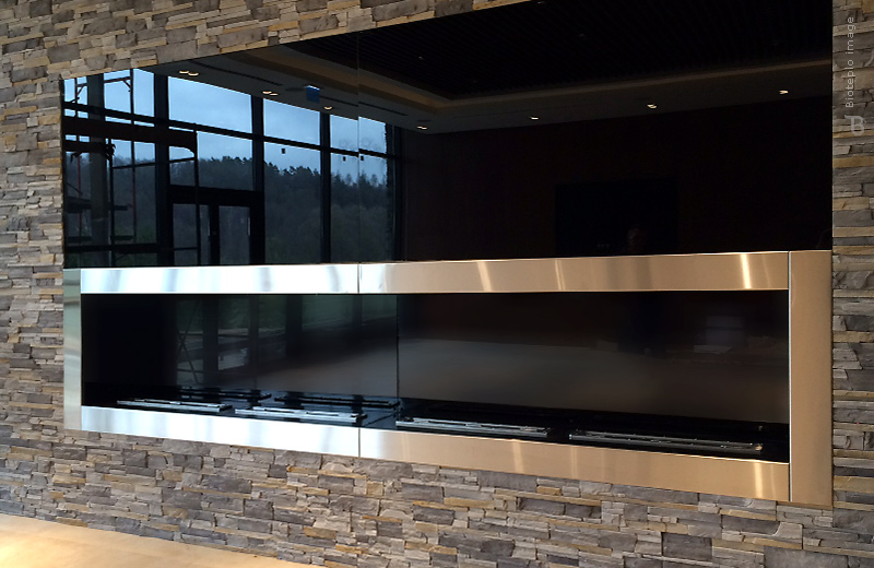 Два биокамина в частных апартаментах. Трехтопочный механический Monumentale в спальне и встраиваемый Antibes в гостиной.